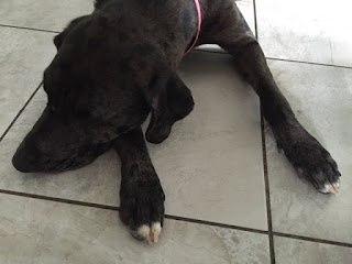 And in case you were wondering about the bandage, she either sliced her foot before she came here, or the day we got her. 5 stitches. And then she got spayed two days later. So mostly she has been recovering since she arrived.